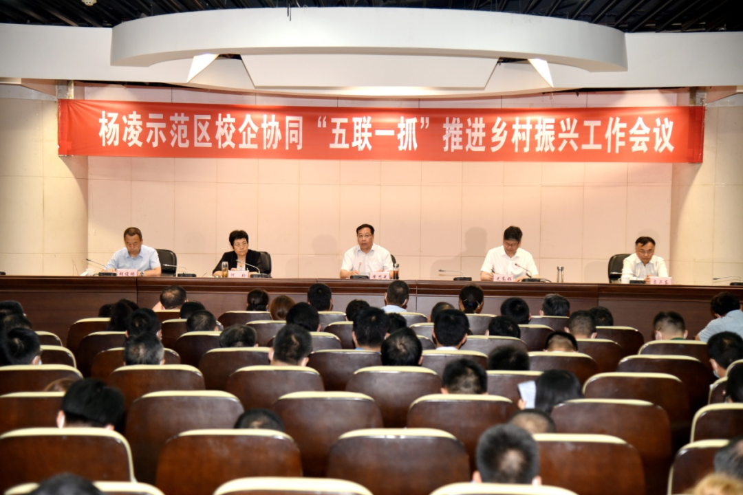 7月14日,杨凌示范区召开校企协同“五联一抓”推进乡村振兴工作现场会,总结今年以来“五联一抓”工作取得的新进展、新成效,安排下一阶段重点工作,动员全区上下进一步提高认识,鼓足干劲,以更高标准、更实举措、更大力度,加快推进示范区乡村振兴上台阶、上水平、出模式。党工委书记黄思光出席会议并讲话。党工委副书记、管委会常务副主任史高领主持会议。党工委副书记何玲通报“五联一抓”进展情况并安排相关工作。西北农林科技大学党委副书记吕卫东、杨凌职业技术学院副校长胡俊鹏出席会议并讲话。