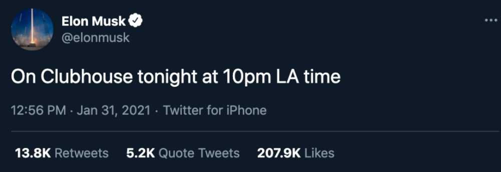 马斯克1月31日发推特表示,将在Clubhouse开启房间和大家聊天,这一举动让Clubhouse一夜火爆全球!