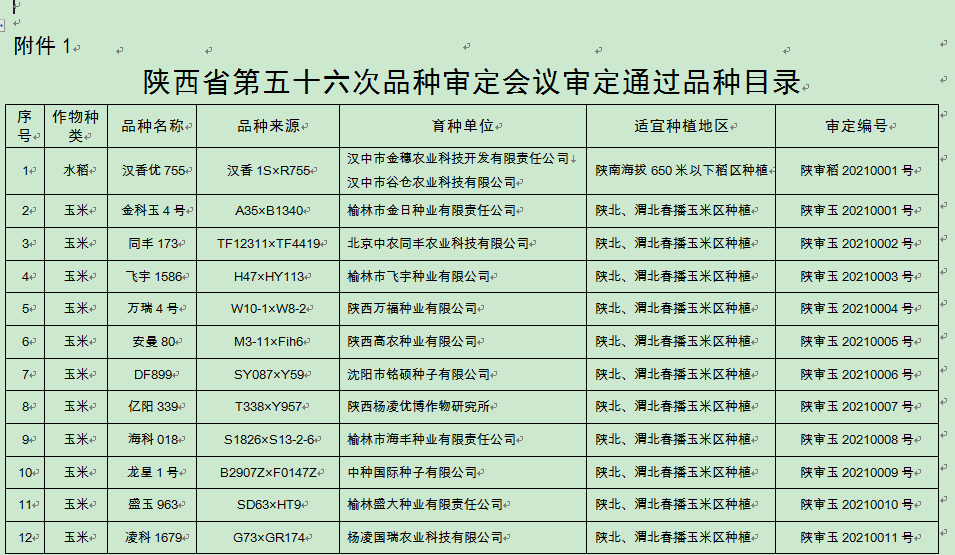近日,陕西省农业农村厅关于公布第五十六次农作物品种审定结果的通知,明确共审定通过了水稻、玉米品种80个,杨凌占34个, 以玉米品种为主。其中,西北农林科技大学15个,其他区内企业(研究所)19个。