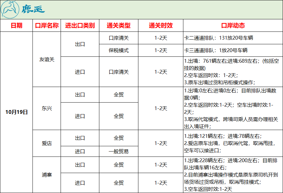 10月19日中越边境口岸最新通关资讯 越南物流专线 快优国际物流