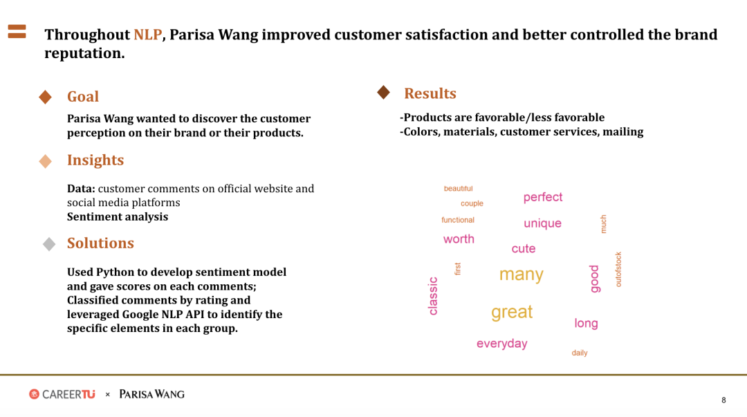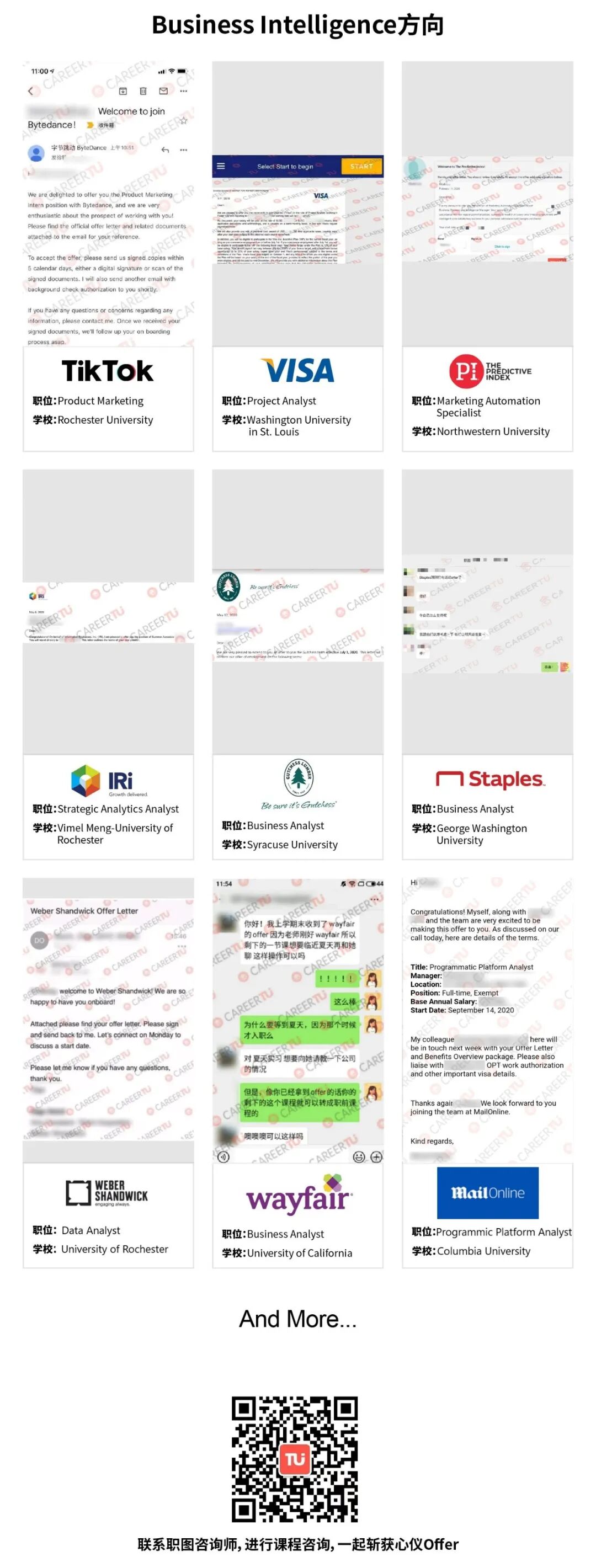 有原本学习金融专业,疫情期拿下TikTok数据分析实习Offer,并且最后顺利转正拿下全职Offer的学员;有在疫情期间从文科转专业直接拿下Prudential全职数据分析岗位的学员;也有在疫情期间,从传统市场营销顺利跳槽拿到金融科技公司做增长营销的学员;也有在疫情期间,选择回国,一口气拿下字节、阿里、华为等多家公司Offer的学员。