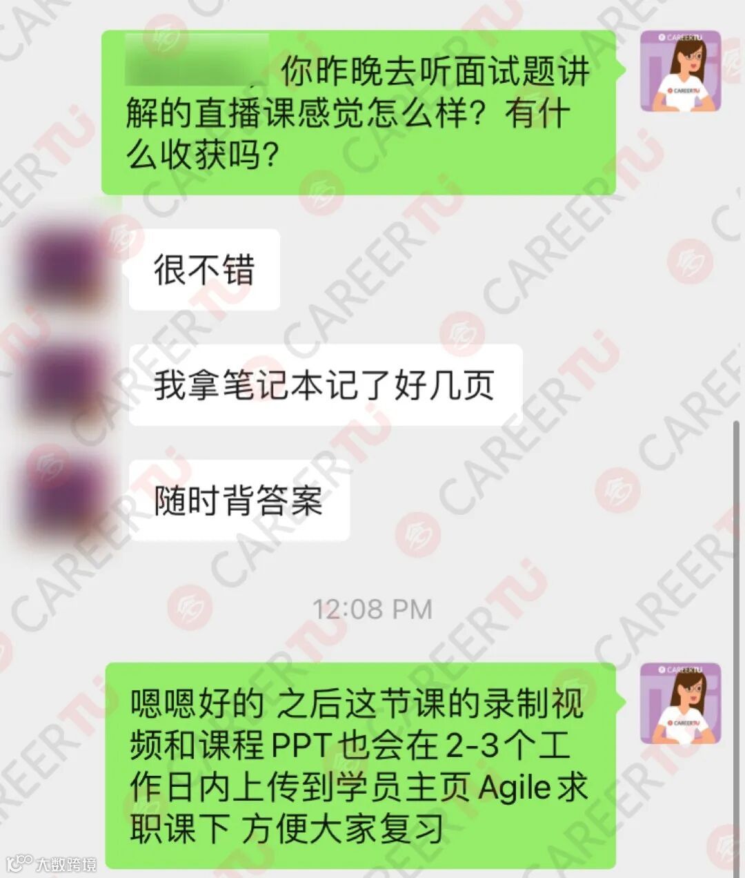 教学团队为了让学员在面试中能够脱颖而出,连夜推出了Agile系列课程之工具课和面试题解析。导师传授行业最前沿的工具使用方法,以及针对面试的常考题和经典案例题进行教学,减少同学们准备面试时的焦虑,学会了方法,心中也更加的有信心。有小学妹上课之后,告诉我们,记了满满的笔记,之后要好好复习!
