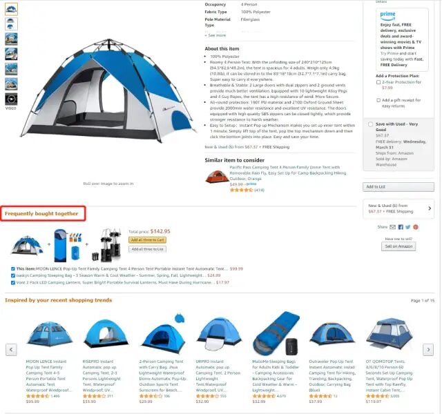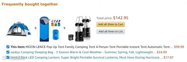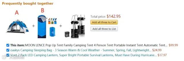 比如下图这款帐篷被多次共同购买的产品,是一款睡袋和一款露营灯。