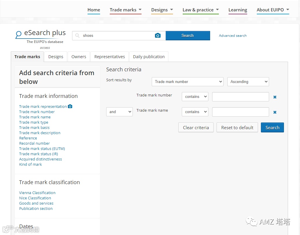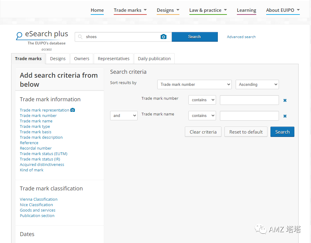 3. 欧盟外观专利查询可进入:https://euipo.europa.eu/ohimportal/en/home,输入专利号/申请人名称/产品名称等进行查询