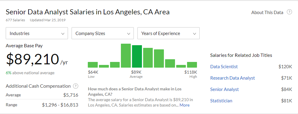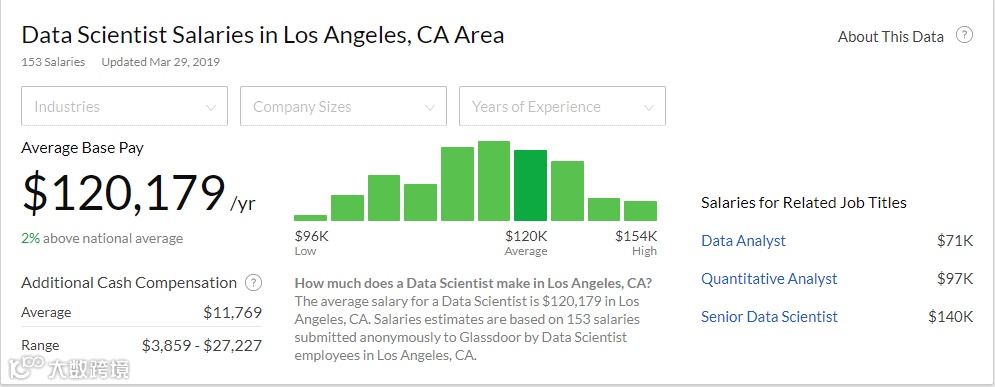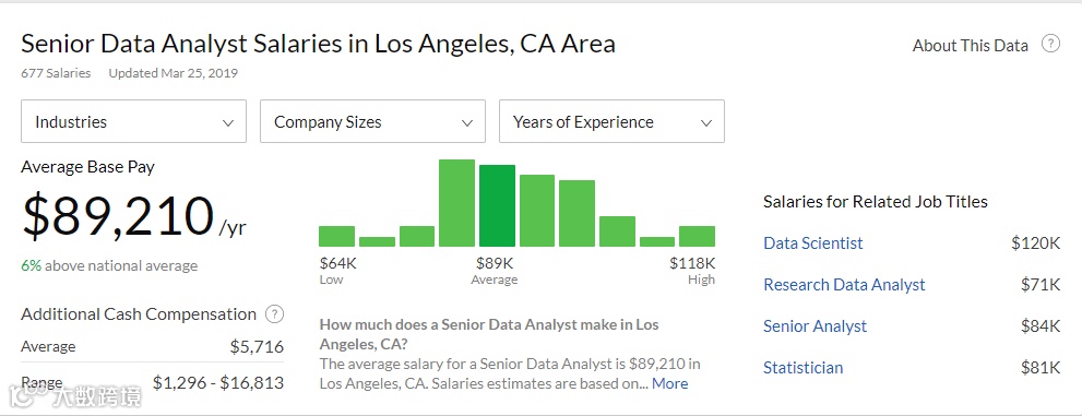 DA的薪资和BA大致持平,不过也有很多同学DA做到了Senior DA 就转去做DS了,薪资翻的非常快。