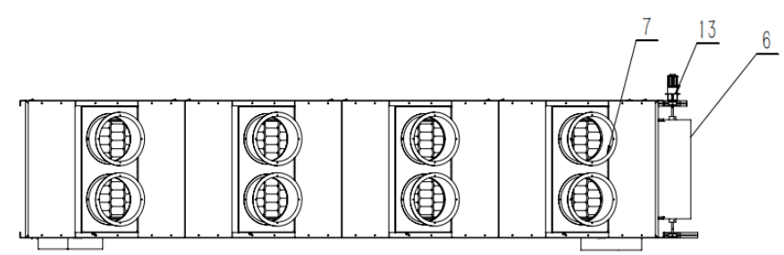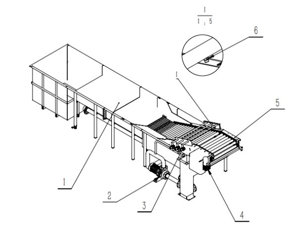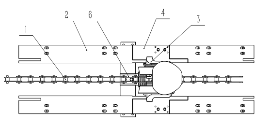 本实用新型涉及水果输送结构技术领域,且公开了一种水果防碰撞出口结构,包括机壳,所述机壳的一侧连接有驱动电机,所述机壳的右上侧连接有链接架,所述机壳的左下侧安装有第一缓冲毛刷,所述机壳的底部安装有仿型皮带,本实用新型通过设置仿型皮带,且仿形皮带为软材材质这样保证运动过程中水果表面不会损伤,设置第一缓冲毛刷的作用是降低水果的运动速度避免进入包装台的水果和前面的水果碰撞,另外通过设置第二缓冲毛刷和驱动电机,可以通过驱动电机带动第二缓冲毛刷进行无极调速,使得第二缓冲毛刷的转动速度调整到一个保证第一掉落水果和第二个掉落水果之间隔一层毛刷毛用以减少前后掉入水果之间的碰撞。