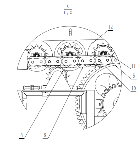 本实用新型涉公开了一种苹果表面风干抛光装置,包括机架,所述机架的下端中间处安装有控制箱,且控制箱的前方设置有自转驱动电机,所述控制箱的后方安装有公转驱动电机,且公转驱动电机转动带动公转驱动链轮进行转动,所述公转驱动链轮的齿轮下端与公转驱动链条啮合连接,且公转链条上面装有抛光毛刷,且公转驱动链条的后方安装有自转驱动链条,所述自转驱动链条的上端与自转驱动链轮啮合连接,且自转链轮的装在抛光毛刷上,所述自转驱动链条的下端与张紧轮表面啮合连接,所述机架的顶部设置有轴流风机。该苹果表面风干抛光装置,通过设置多组轴流风机,使得苹果表面的水分可以快速风干,同时设置多组抛光毛刷,可以对苹果表面进行抛光,使其表面晶莹透亮。