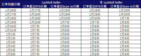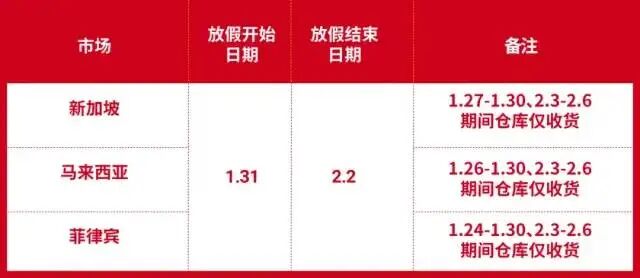Lazada 2022年春节假期安排