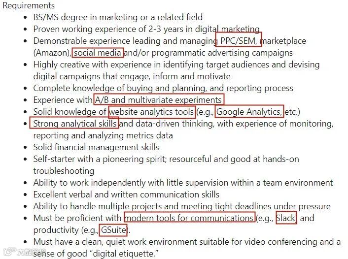 通过Wayfair的Paid Search Analyst岗位招聘为例: