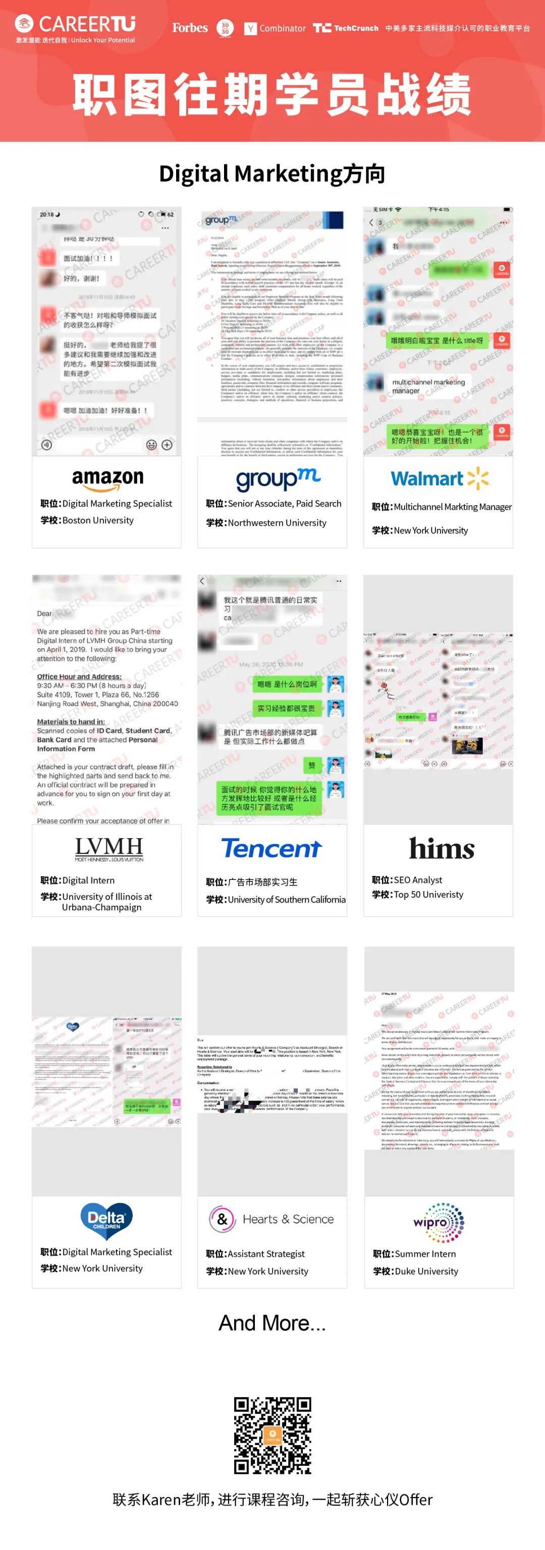 在近1年内,参与CareerTu课程的学员们,也在Digital Marketing这个方向斩获了许多大厂Offer: