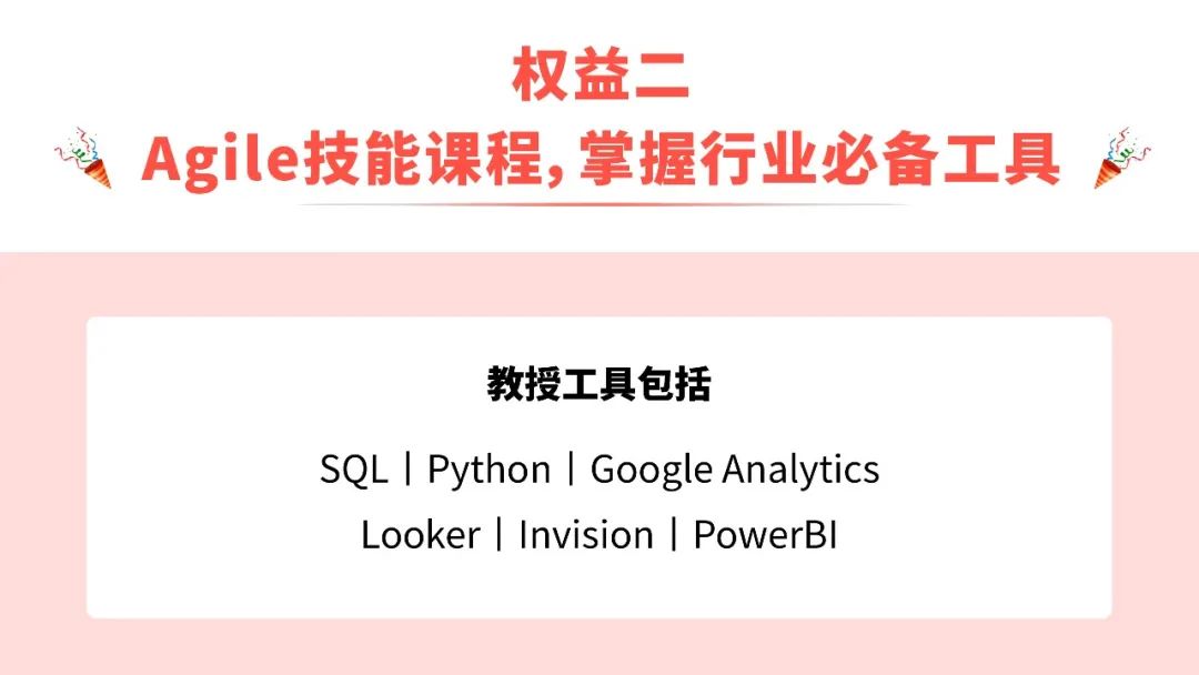 教授工具包括:SQL丨Python丨Google Analytics丨Looker丨Invision丨PowerBI