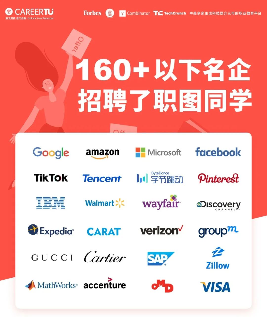 至今,共计160+的全球名企招聘了职图学员。