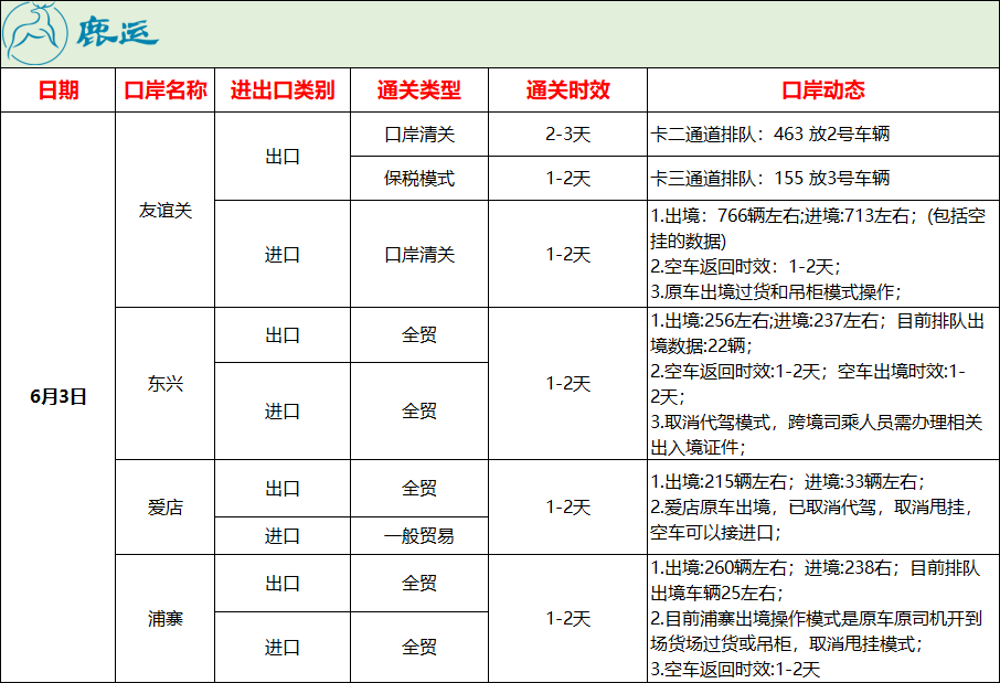 6月3日中越边境口岸最新通关资讯 越南物流专线 快优国际物流