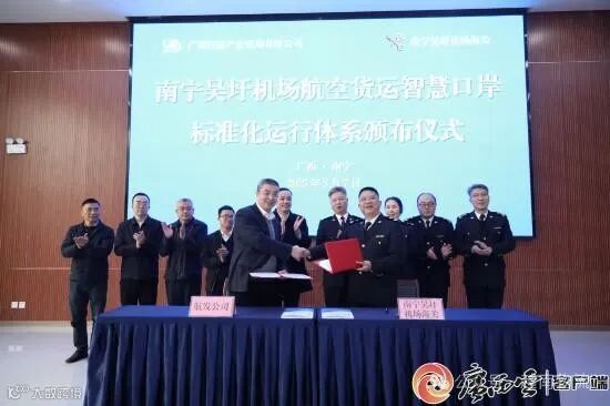 3月7日,南宁吴圩机场海关与广西民航产业发展有限公司,联合发布了广西机场范围内首个智慧口岸标准化管理的制度性文件《南宁吴圩机场航空货运智慧口岸标准化运行体系》(以下简称《体系》)。