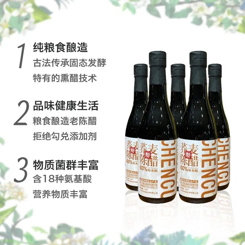 荞麦陈醋,纯粮食酿制,是上乘的调味品,该产品以特产荞麦、豌豆麸皮为主要原料,不添加任何化学试剂。荞麦含有人体所必需的19种氨基酸,并含有大量的抗肿瘤因素,长期食用,有治疗高血压,控制糖尿病之效,是理想的保健品。加之食醋有促进身体对钙的吸收、降低胆固醇,防止动脉硬化之功效,是理想的保健品。
