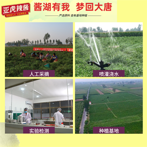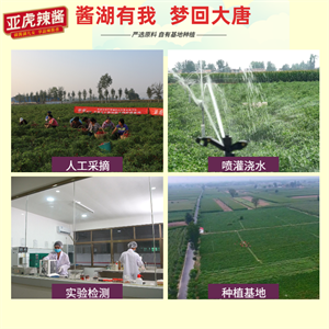 香辣酱是亚虎辣酱主打产品之一,是一种复合调味酱,辣子蒜采用国家地理标志认定的辣椒大蒜作为原材料,一罐简单的香辣酱,它是多变的,丰富的,鲜香迷人的,味韵十足,和喜欢的事物一起抚摸你的唇舌直至深处,美妙也不过如此,它是古代工艺结合现代工艺的独特产品,美味让人无法把持。豆豉香辣酱独具风味,豉香留唇,蒜香浓郁,辣味适中,独特的豉香蒜浓辣适中的味道特别开胃下饭,拌蘸焖炒烤,一勺都搞定。