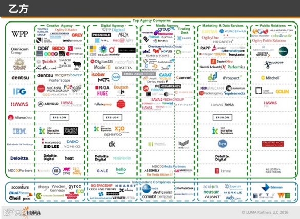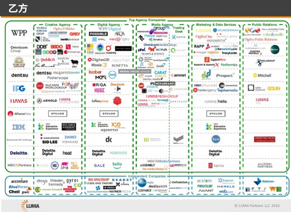 近几年,和Agency抢客户的,还有咨询公司。2017年8月初,全球著名咨询公司埃森哲又收购了一家营销咨询公司Brand Learning。这家公司员工总数只有120人,但它却服务了全球超过60个国家的160个客户,行业涉及到零售、快消、汽车、能源、生物科技以及金融服务。IBM、德勤(Deloitte)也都纷纷“下海”,做起了Agency的角色。
