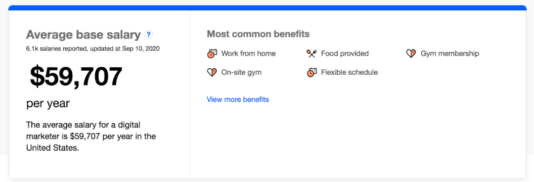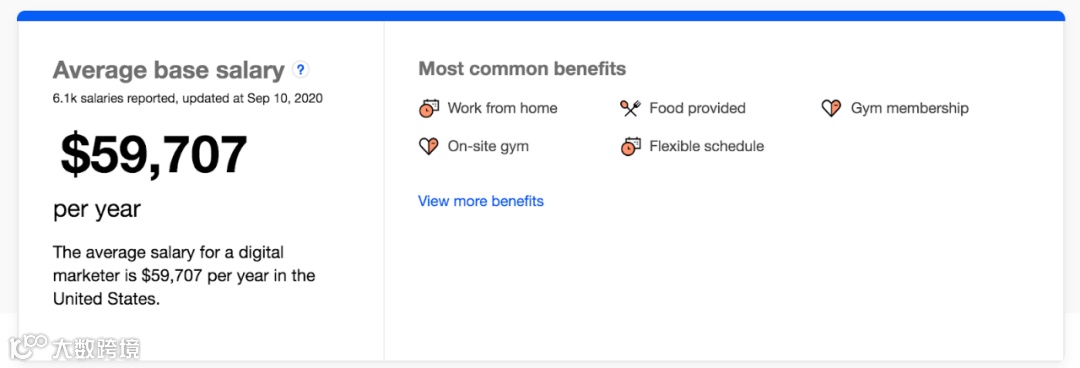 根据Indeed 统计,美国平均数字营销人Digital Marketer的平均年薪在59K,根据不同地区的消费水平有较大区别。