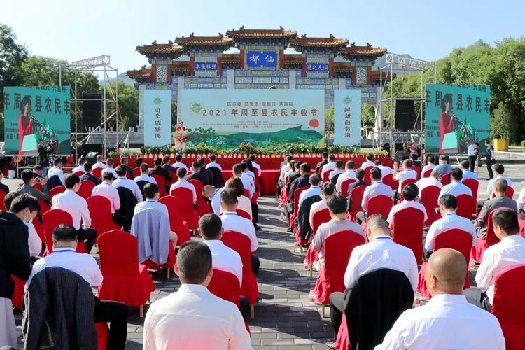 周至县2021年中国农民丰收节庆祝活动在楼观台福地广场举行。