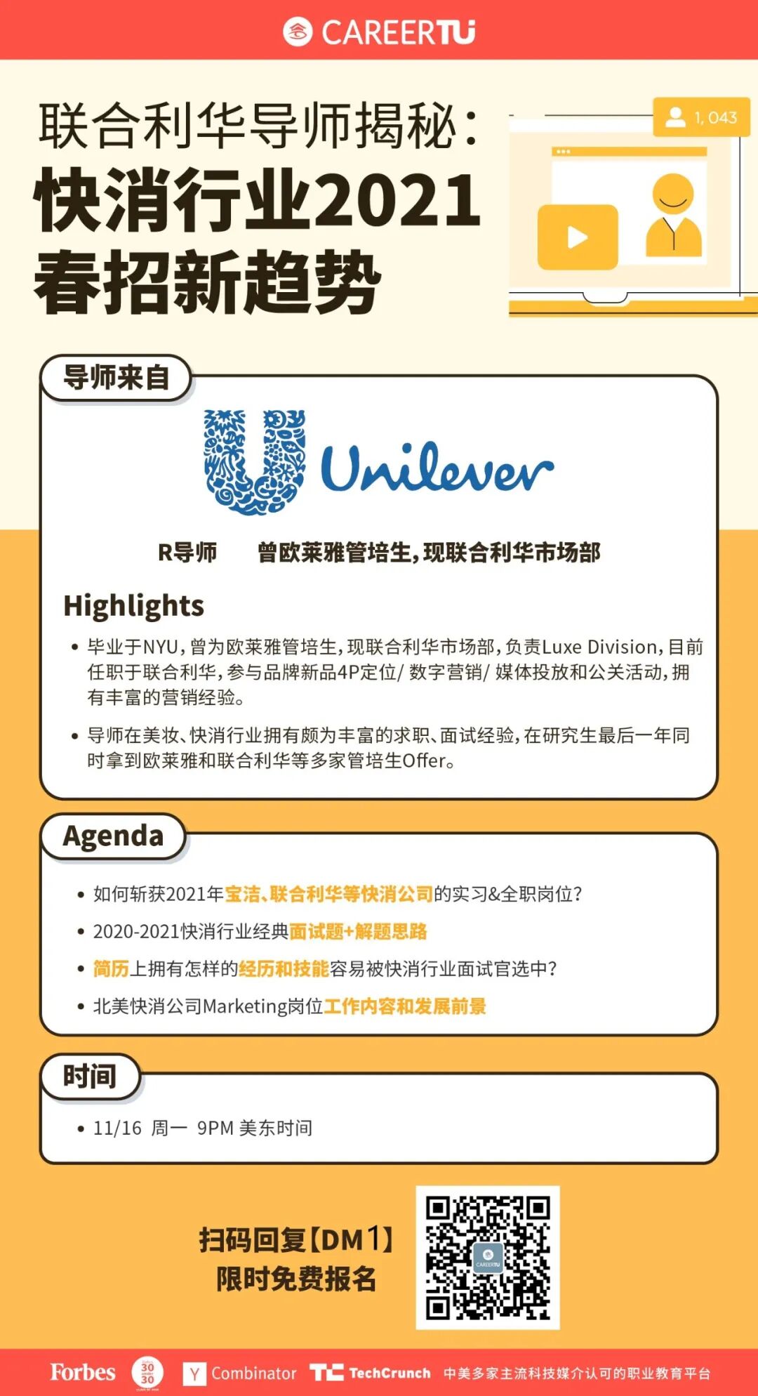 免费求职直播 | 联合利华导师揭秘:2021快消行业春招新趋势! CareerTu职图