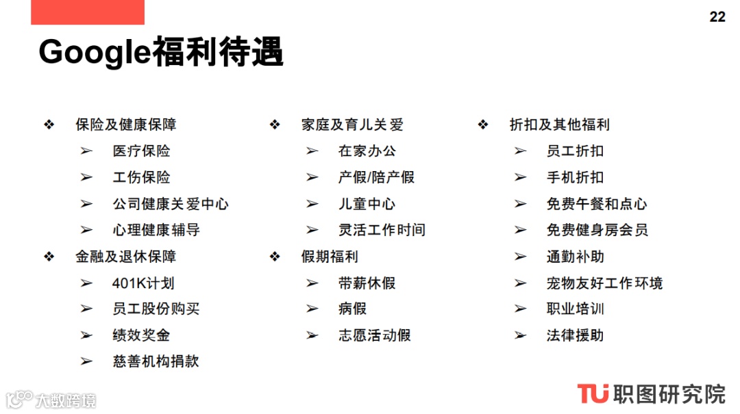 这一系列报告为想要加入Google、TikTok等科技公司的求职者提供了全面的求职信息。包括员工及招聘规模、Digital Marketing, Business Intelligence, Data Science, and Product Design方向的Entry Level热招职位及其匹配技能、面试题目、企业文化、薪资水平、福利待遇、以及员工评价等。