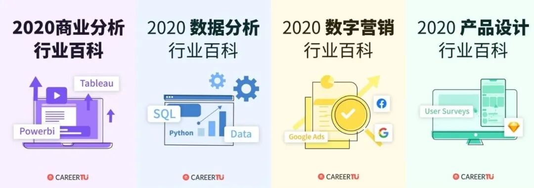 如果你准备求职商业分析、数据分析、数字营销和产品设计四大方向,就可以马上领取2020行业研究百科!帮你提前了解岗位,明确求职方向!