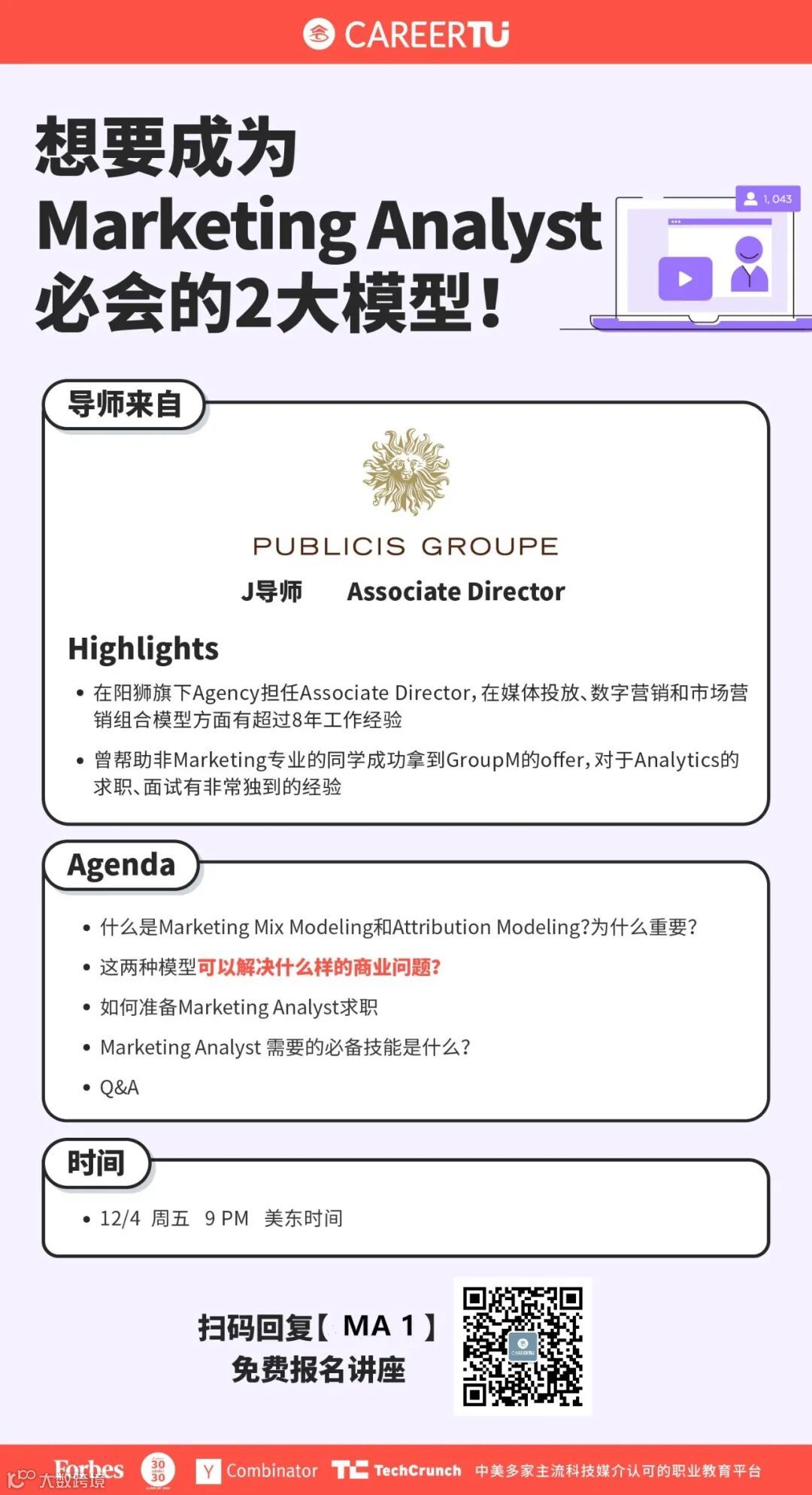 12月求职直播 | 想要成为Marketing Analyst,必会的2大模型! CareerTu职图