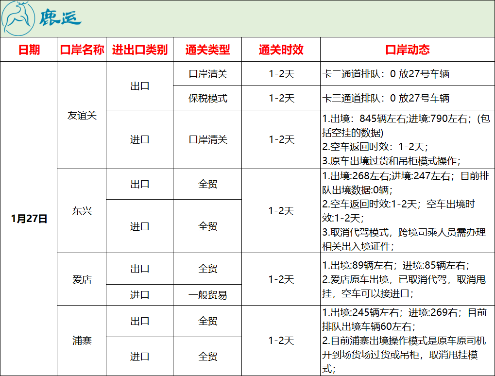 1月27日中越边境口岸最新通关资讯 越南物流专线 快优国际物流