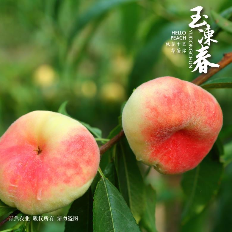 是我社用映双红母本和优系寒露蜜为父本多次花粉杂交而成,青州市果树站农业局领导一行人品鉴指导取名“赛金玉”,果面光洁,绒毛极少,底色白绿,两半部对称,果型端正,果梗浅,叶披针状,枝条有轻微棱角,上糖度早,在幼果期已达到同期上市桃的糖度,实属罕见,随着果实不断膨大,果面越发靓丽,糖度越来越高,主要的是特别的口感,属于硬质性桃,从外观触摸很硬,很耐运输,但外果肉和内果肉的属性表现不同。