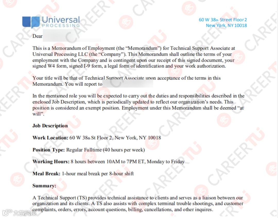 成果:斩获Universal Processing – Technical Support Associate Offer
