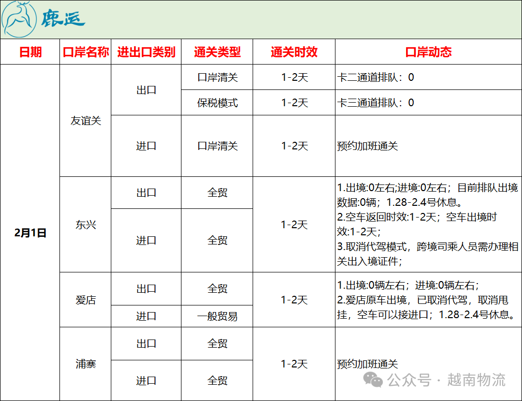 2月1日中越边境口岸最新通关资讯 越南物流专线 快优国际物流