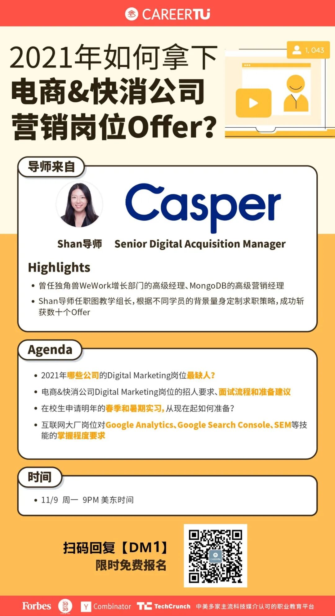 限时免费 | Casper导师教你:如何拿下电商/快消公司营销岗Offer!