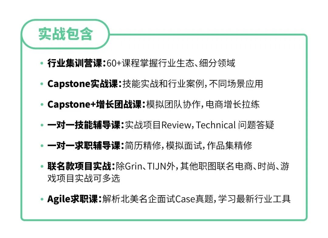 职图Product Design飞跃实战的学员,将在6个月的时间内,通过实战联名款真实商业项目,学会掌握行业高薪技能!通过SWOT Analysis、Competitor Mapping、Design Research等方式制定商业目标,熟练掌握Sketch等必备工具应用。从Wireframing、Prototyping、Research Skills、Customer Analytics等多个知识体系传授硬技能。和数字营销组、商业分析组、数据分析组相互合作共同完成联名款产品落地和推广。