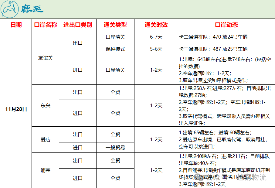 11月28日中越边境口岸最新通关资讯 越南物流专线 快优国际物流