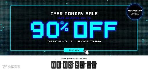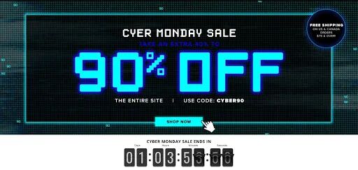 一个典型的例子是倒数计时器,例如Fashion Nova Cyber Monday的销售页面上的倒数计时器。