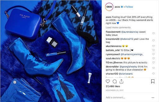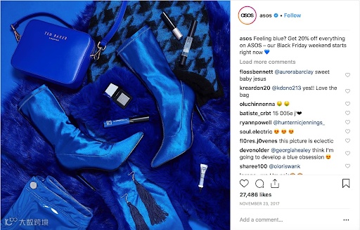早在2017年,ASOS也采用过类似的方法,“悄咪咪”地在Instagram上开始了黑五促销,比其他快时尚品牌提前一周就发布了节日Camapign ,提前赚得满堂彩。