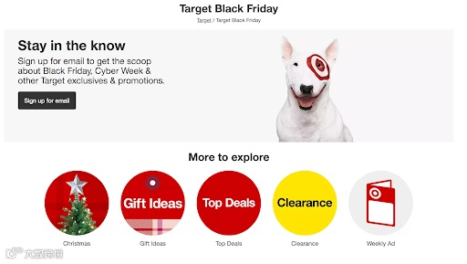 假期期间,每个品牌都在争取客户的注意,竞争变得异常残酷,广告费用也飞涨。能够越早地让用户了解到品牌的促销信息,今年就有不少的电商提前开启黑五Campaign,以沃尔玛为例,旗下连锁店在10月11日至15日启动“大省钱活动”的第一波促销。而Target 早已经创建了黑五活动页面,开始进行促销预告。