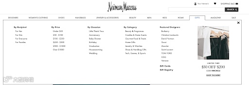 这里就不得不表扬一下电商Neiman Marcus,把礼品从收礼人、礼物价格、节日、礼品种类一一分类,让用户很轻松地找到计划对应的礼物。