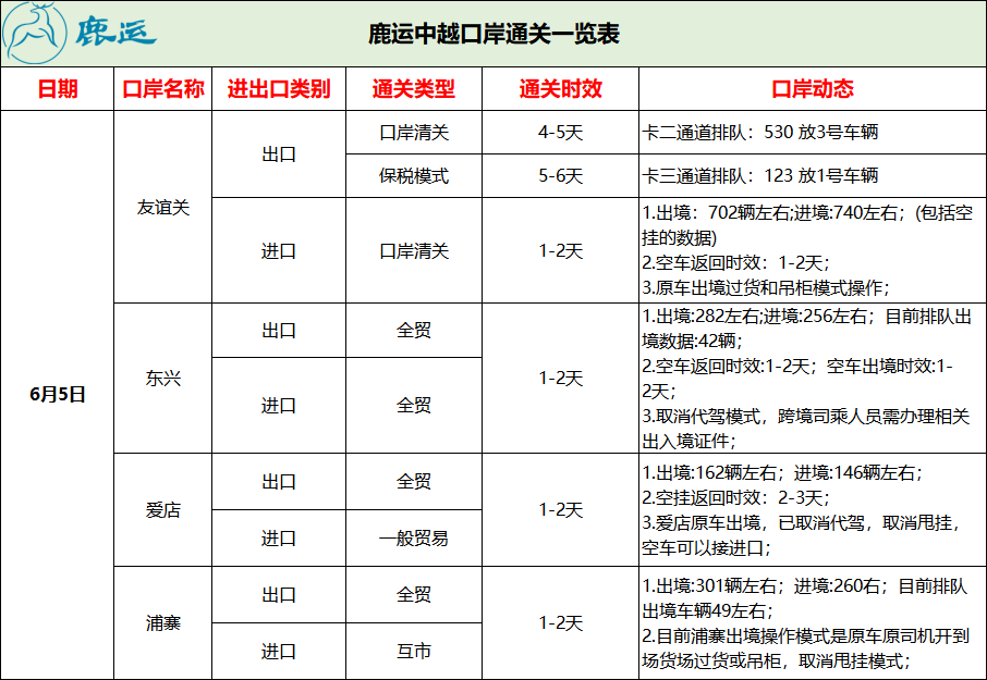 6月5日中越边境口岸最新通关资讯 越南物流专线 快优国际物流