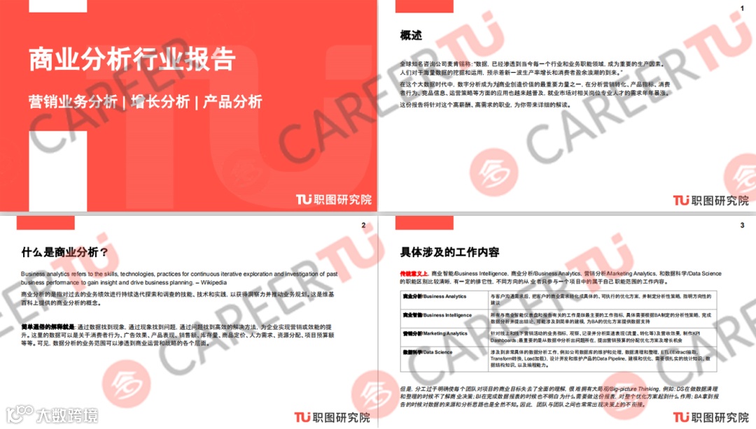 在这个大数据时代中,数字分析成为为商业创造价值的最重要力量之一,在分析营销转化、产品指标、消费者行为、竞品信息、运营策略等方面的应用也越来越普及,就业市场对相关岗位专业人才的需求年年暴涨。这份报告将针对这个高薪酬、高需求的职业,为你带来详细的解读。