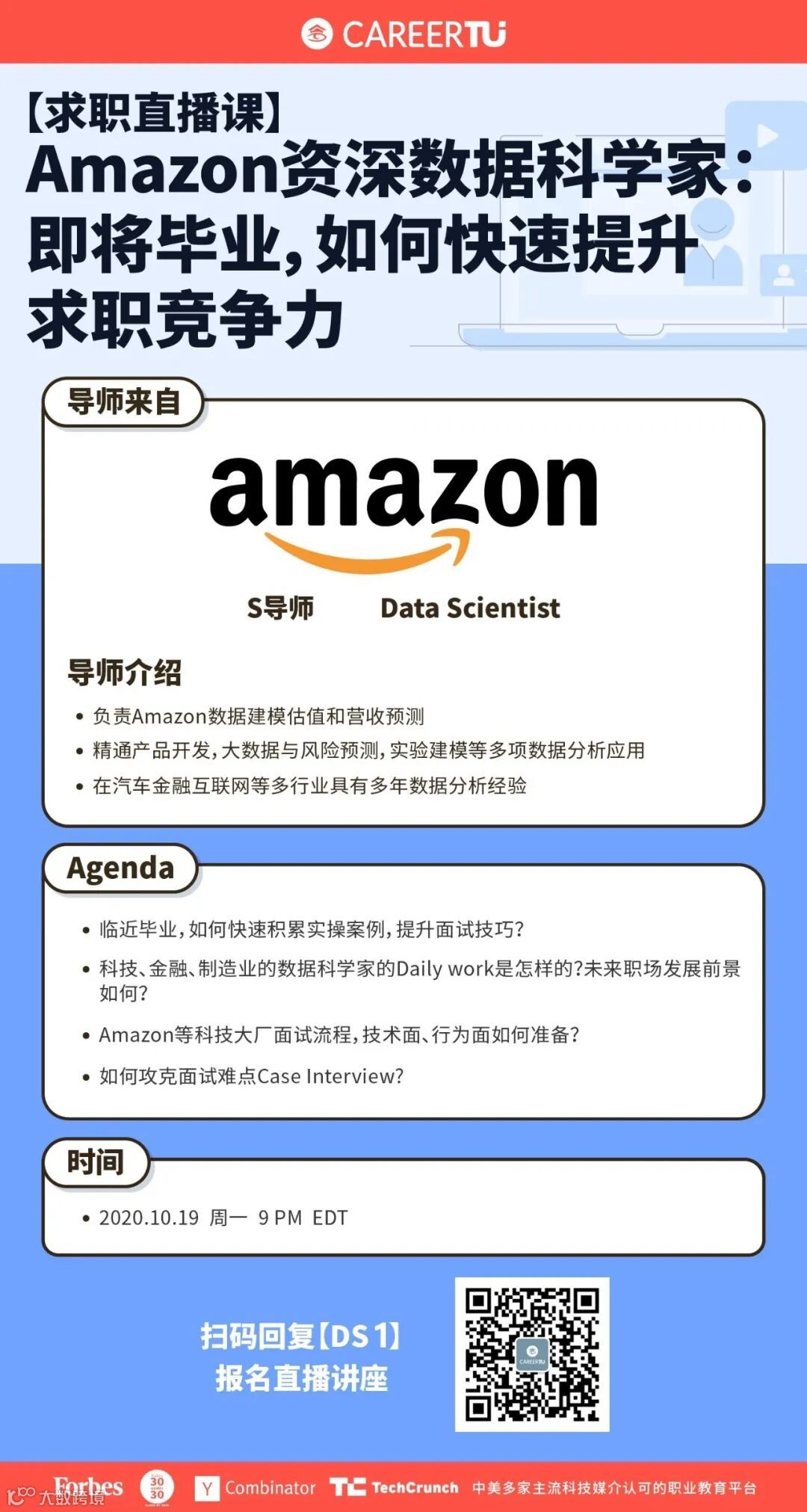Amazon一直是很多同学挤破头都想要进入的企业,今天我们很高兴的邀请到了在Amazon担任高级数据分析师的S导师,看看他是怎么给同学们支招的吧!