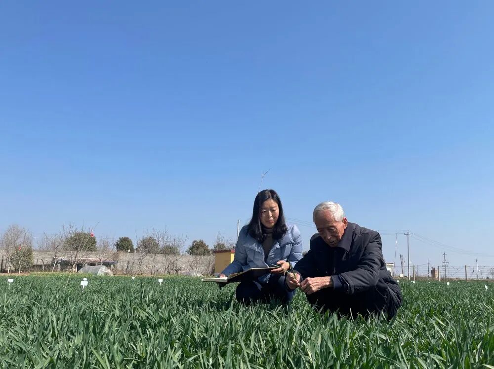 见到86岁的赵瑜时,他和研究员刘江梅正蹲在麦田里,查看长势,不时动笔记录。