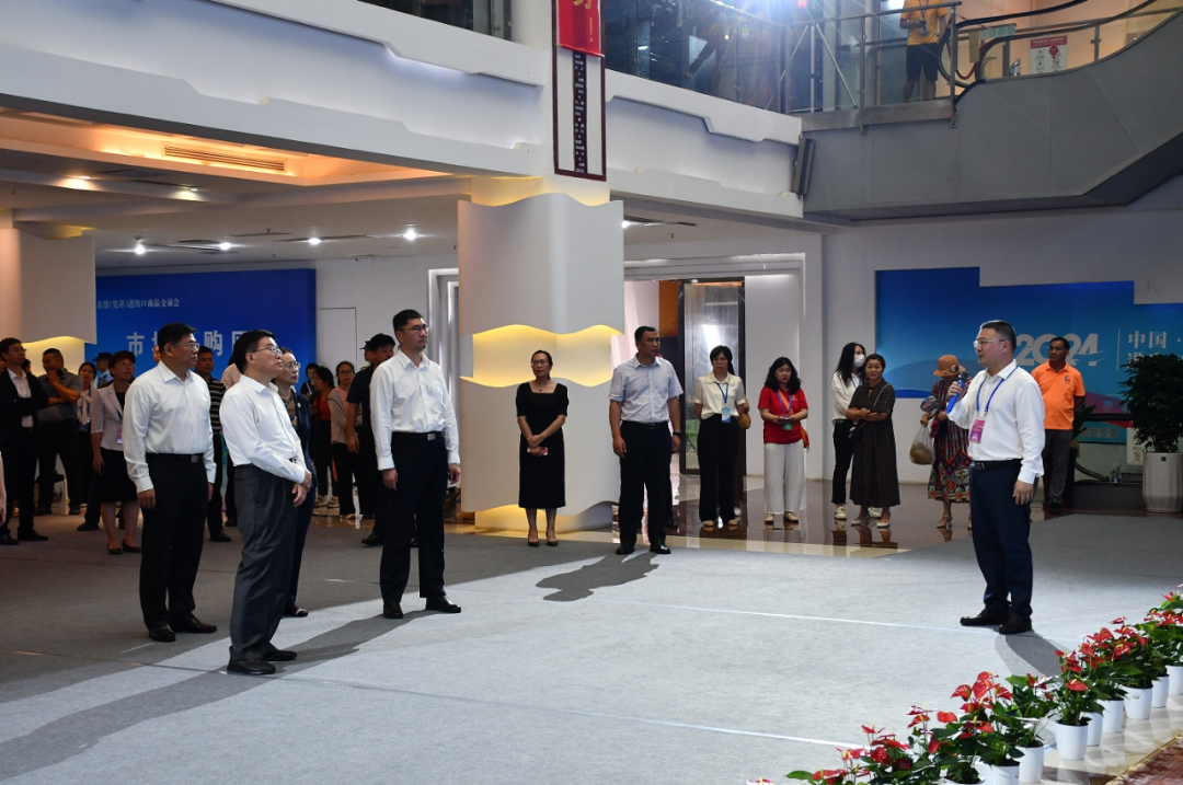 商交会现场,人头攒动,热闹非凡,整个展厅布满来自中国与东盟的商品。苗庆旺一行走进展馆,听取布展相关情况介绍,与参展企业代表进行交流,详细了解各企业产品展示和业务发展情况,并对企业的创新成果和市场前景给予了高度评价。
