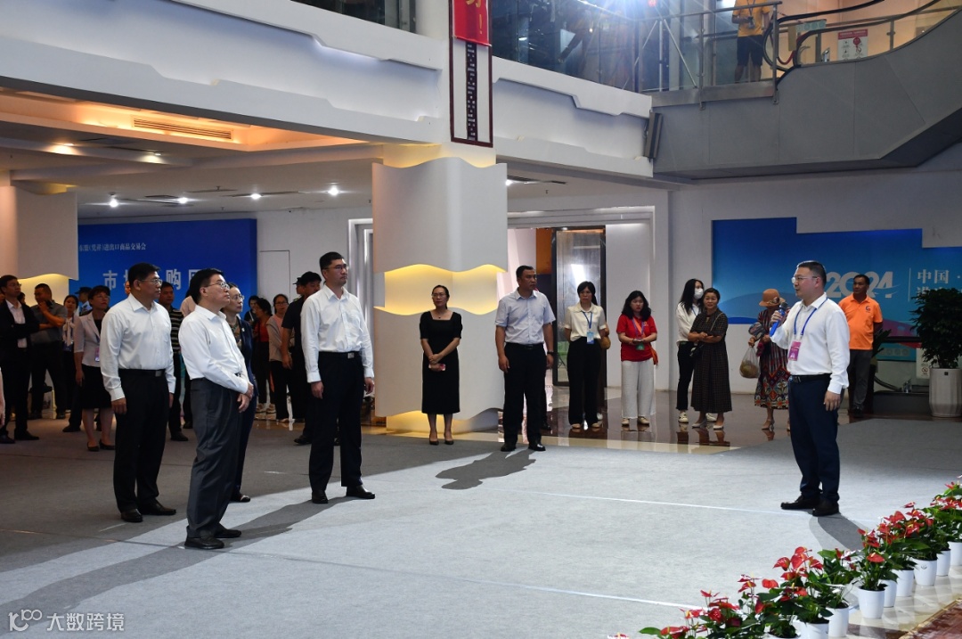 5月27日,2024年广西·凭祥中越边关旅游节进出口商品交易会在红木文博城举办。自治区人民政府副主席苗庆旺、崇左市市长迟威,凭祥市委书记武晓辉等领导到现场巡视展会。