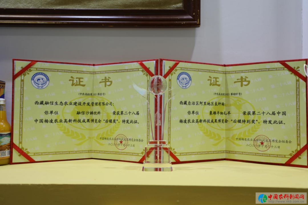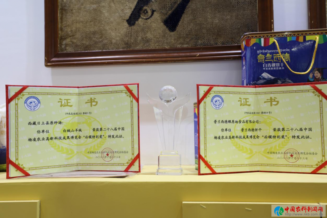 在西藏阿里展区,记者特别注意到,展台上的四个鲜红色证书格外引人注目。展区负责人乔平平告诉记者,这些证书正是今年农高会上,西藏阿里展区荣获的杨凌农高会“后稷特别奖”和“后稷奖”。“今年我们的融信沙棘饮料荣获后稷奖,象雄半细毛羊、白绒山羊绒、普兰西德饼干分别荣获了后稷特别奖,这是对西藏特色农产品的最大认可。”乔平平说。