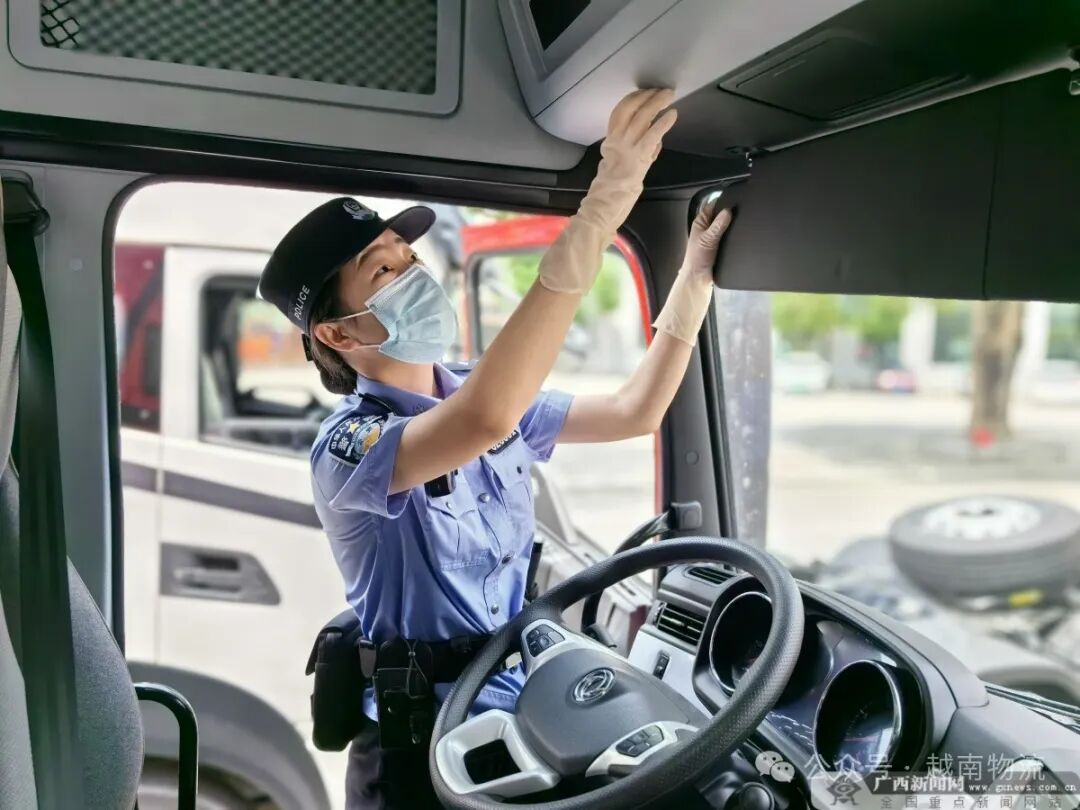 水口关出入境边防检查站民警检查出入境车辆驾驶室。通讯员 叶佳妮 摄