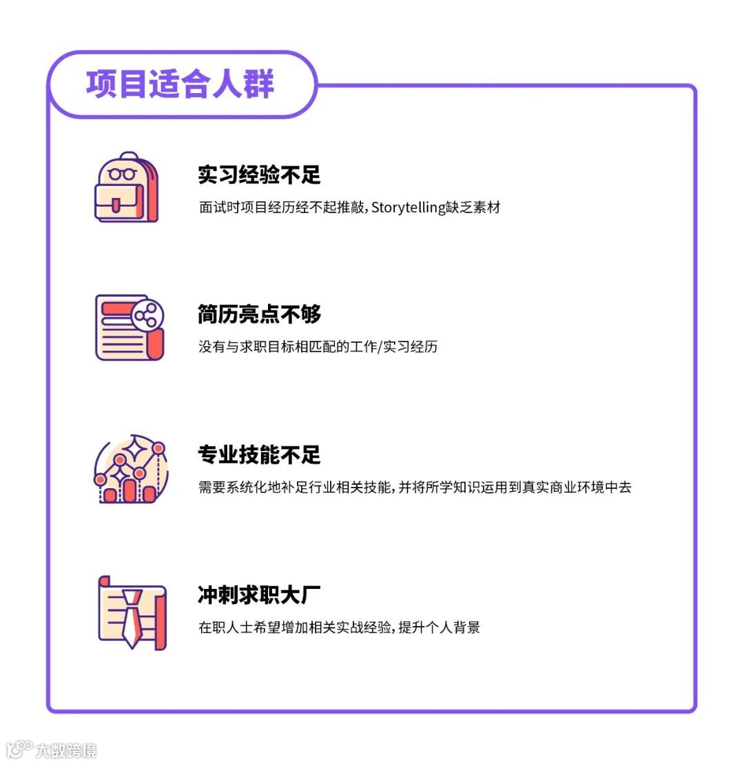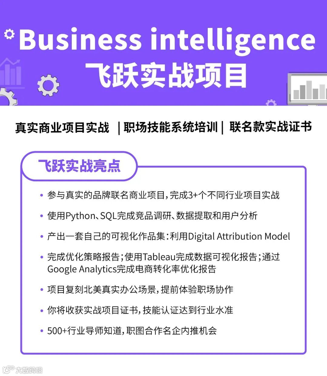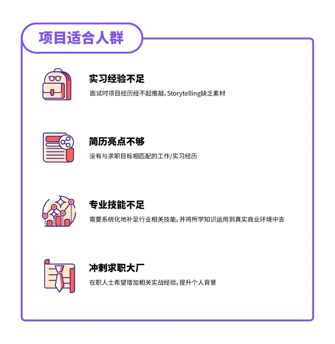 职图飞跃实战就是这样一个既可以学习技能又可以积累经验的一个项目。职图飞跃实战的学员,将在6个月的时间内,通过实战联名款真实商业项目,与各个部门相互合作,共同完成联名款产品网页搭建、营销推广和投放、商业智能分析及数据分析、优化的全过程,充实你简历的项目经历、让你面试不怵。