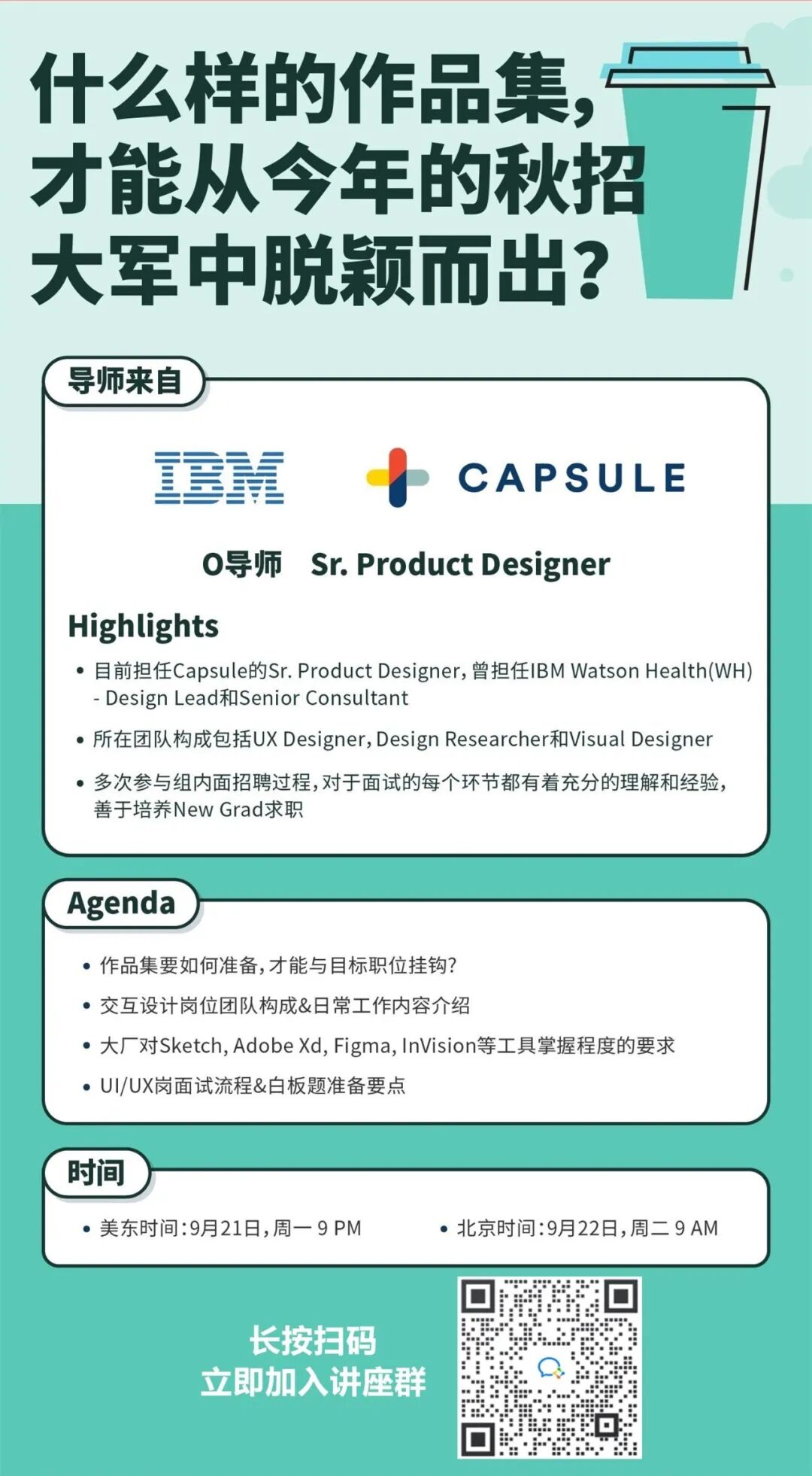 目前担任Capsule的Sr.Product Designer,曾担任IBM Watson Health(WH)-Design Lead和Senior Consultant