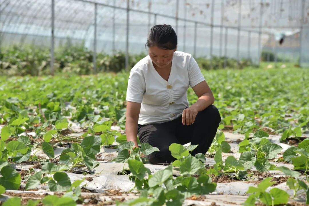 在其中一个大棚里,来自旬阳市棕溪镇的童开英正在管理甜瓜种苗。她和丈夫承包的棚里除了甜瓜制种外,还在进行茄子制种。