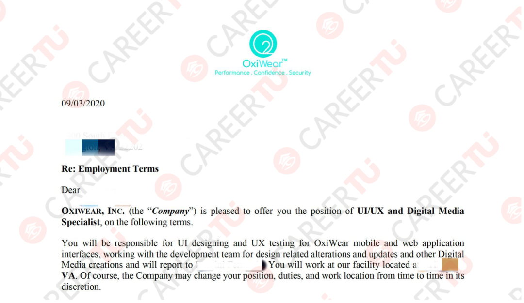 成果:斩获OxiWear– UI/UX and Digital Marketing Specialist Offer